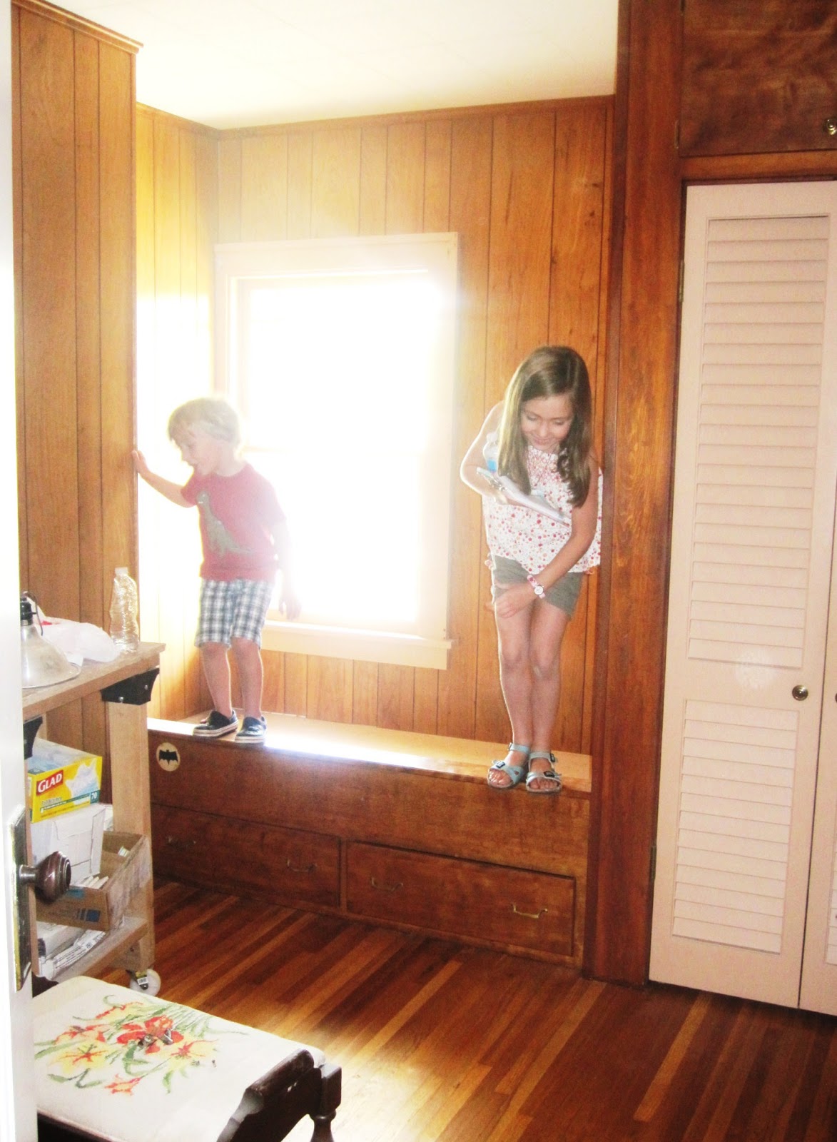 Do you remember what we started with? Two rooms, one of the rooms was only accessible through a door in the master, no closet for me (piles of clothes everywhere), layers of wallpaper (including dusty grasscloth), non-working electrical, ceiling tiles. Refresh your memory- click here, here and here.